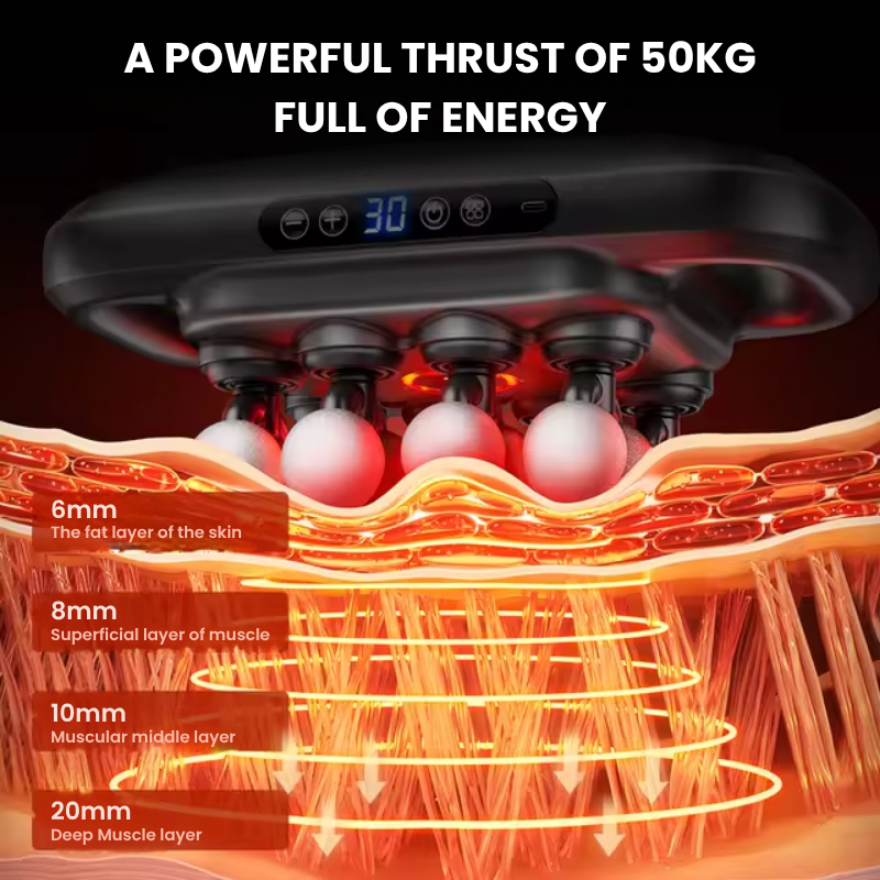 RevPulse’s multi-head percussion technology penetrates deep into tight muscle fibers, breaking up knots that restrict mobility. This helps restore flexibility, so you can move more freely and comfortably without daily stiffness holding you back.