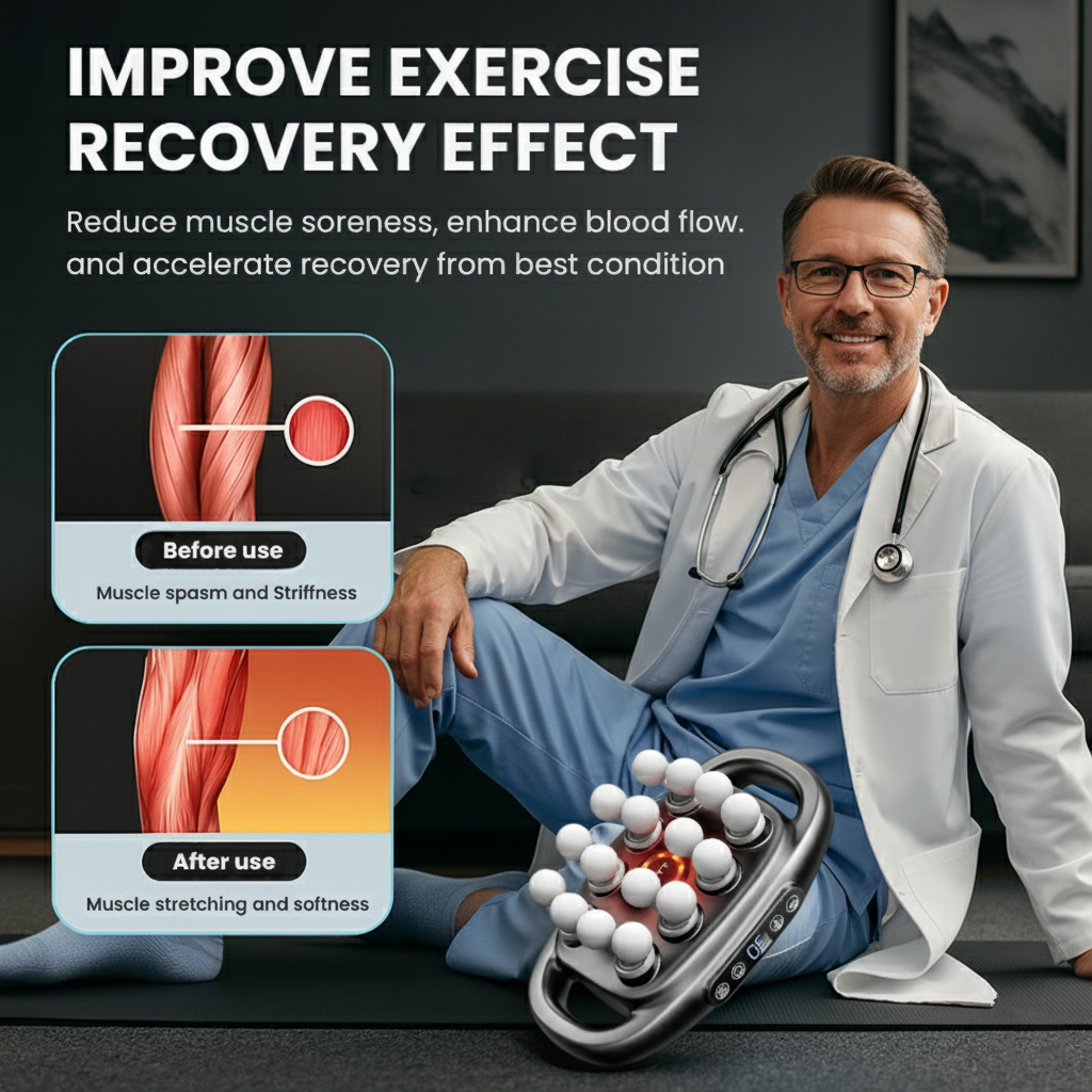 "As a physiotherapist, I always recommend the PulseDrive™ to my clients who deal with sore muscles and tight knots. It’s a true game-changer for recovery. With its 16-head design and powerful percussion, it penetrates deep into the muscle tissue without causing strain or discomfort. The results are immediate — faster recovery, less soreness, and improved mobility. Trust me, your body will thank you!" – Dr. Jason, Sports Physiotherapist